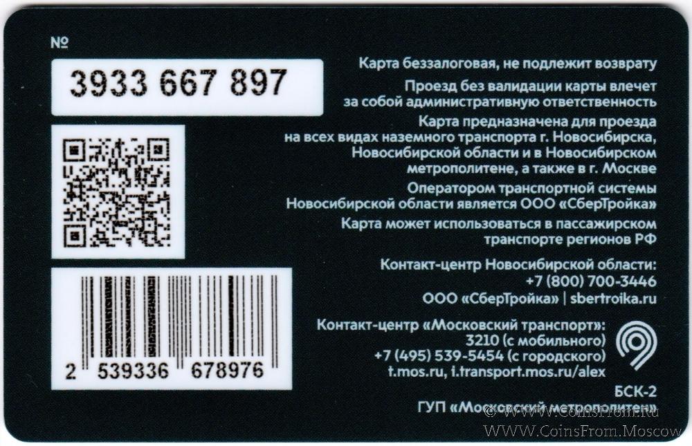 Карта подарочная (3933) беззалоговая, не подлежит возврату. Проезд без валидации карты влечет административную ответственность. Для проезда на всех видах наземного транспорта г. Новосибюирска, Новосибирской области и в Новосибирском метрополитене, а также в г. Москве.