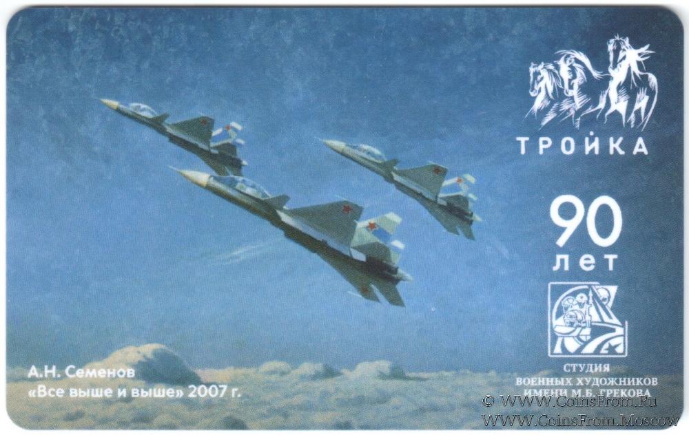 Электронная транспортная карта "Тройка". Размер: 85,5 * 54 мм. Тематическая карта "Тройка" посвящена 90-летию Студии военных художников имени М. Б. Грекова. Выпуск 3 (серия из 6 карт): Семенов А.Н. "Все выше и выше" 2007 г.