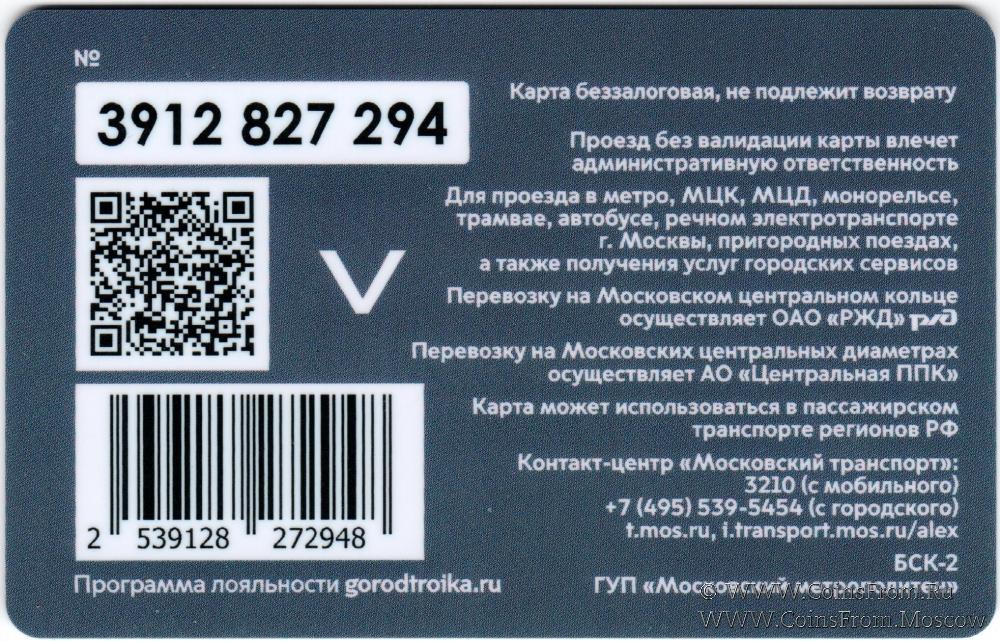 Карта беззалоговая, не подлежит возврату. Проезд без валидации карты влечет административную ответственность. Для проезда в метро, МЦК, МЦД, монорельсе, трамвае, автобусе, речном электротранспорте г. Москвы, пригородных поездах, а также получения услуг городских сервисов.