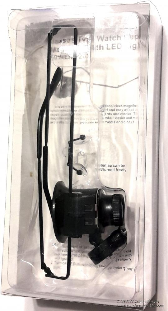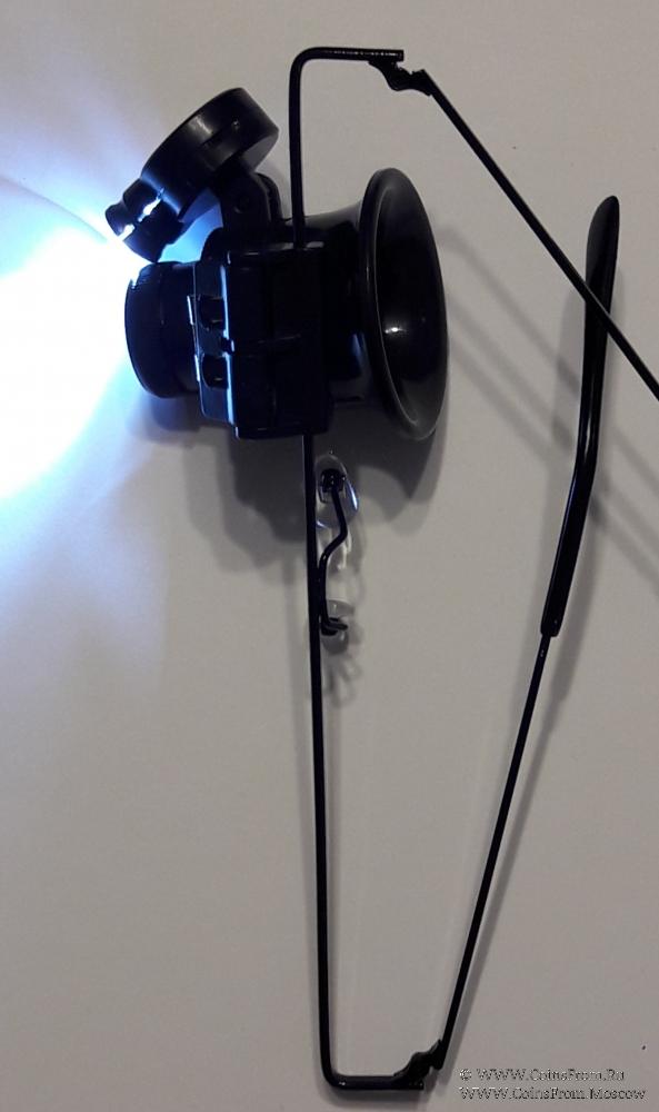 Очки микроскоп на 1 глаз. Увеличение Х20. Светодиодная подсветка. Изменяемый угол подсветки и окуляров.