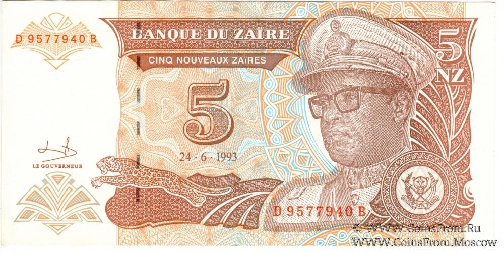 Выпуск 1993 (в новых заирах). Banque du Zaire Денежная реформа 1 новый заир = 3.000.000 заирам.