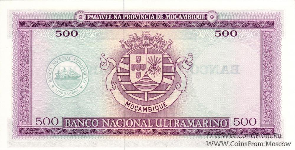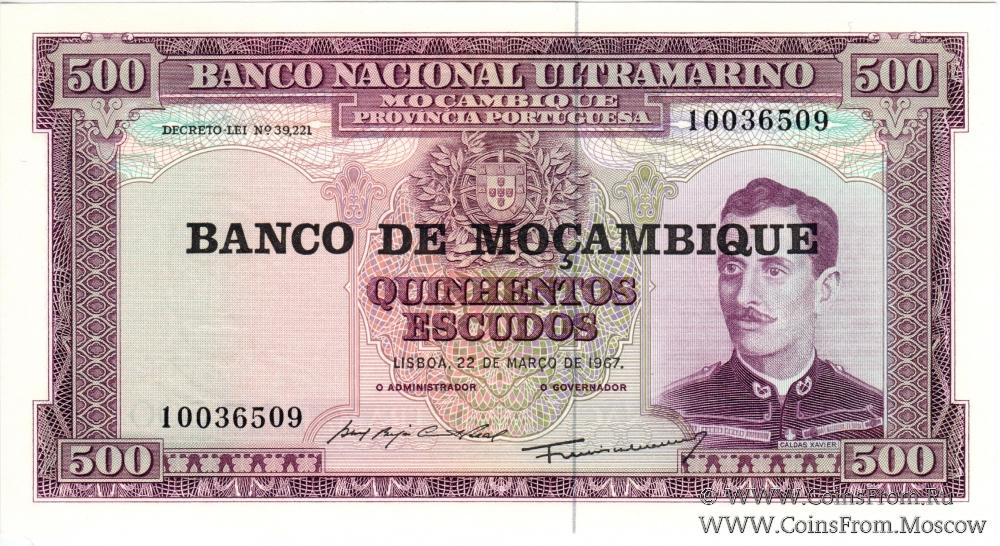 Переходный выпуск 1976 г. Банкноты с надпечаткой Banco de Moçambique.