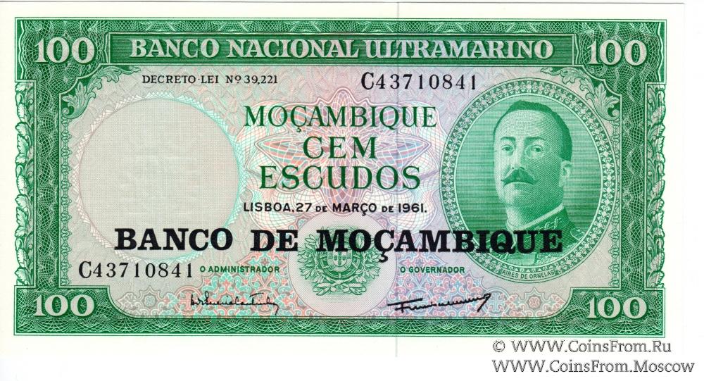 Переходный выпуск 1976 г. Банкноты с надпечаткой Banco de Moçambique.