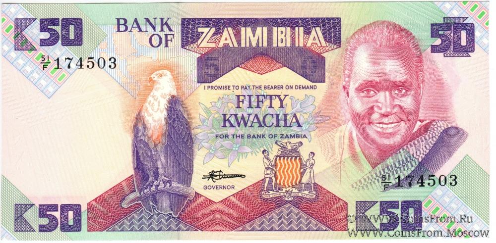 Выпуск 1969 г. Банкнота без даты (1986) г. Bank of Zambia.