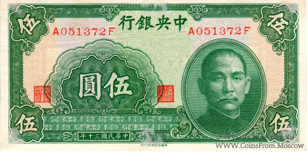 Выпуск 1941 г. Центральный Банк Китая (The Central Bank of China / 行銀央中).