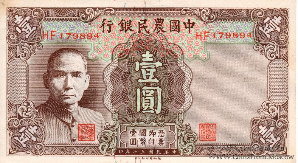 Выпуск 1941 г. Фермерский Банк Китая (The Farmers Bank of China).