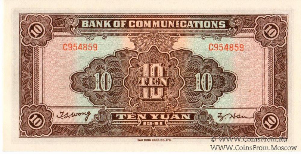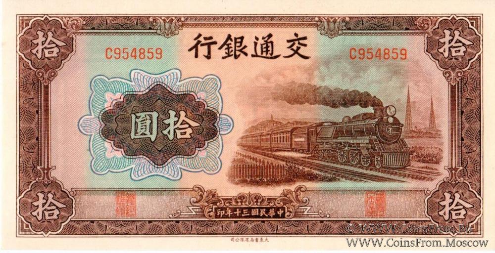 Выпуск 1941 г. Серия С. Банк Путей Сообщения (Bank of Communications / 行銀通交). Типография: Dah Tung Book.