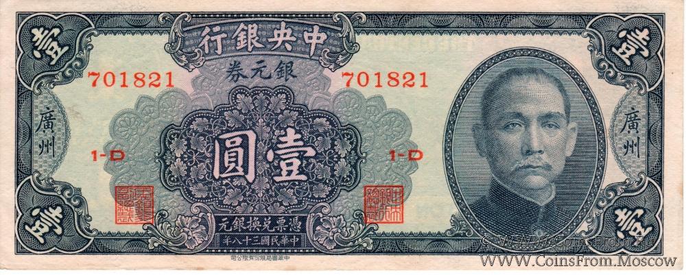Выпуски 1949 г. в серебряных долларах. Размер ~15х6 см. Центральный Банк Китая (The Central Bank of China / 行銀央中).