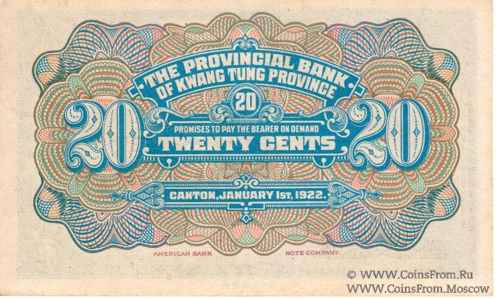 Выпуск 1922 г. Размер ~9,5x5,5 см The Provincial Bank of Kwangtung Province (廣東省銀行况換券).