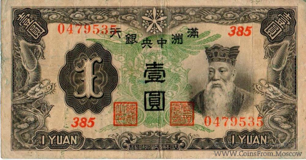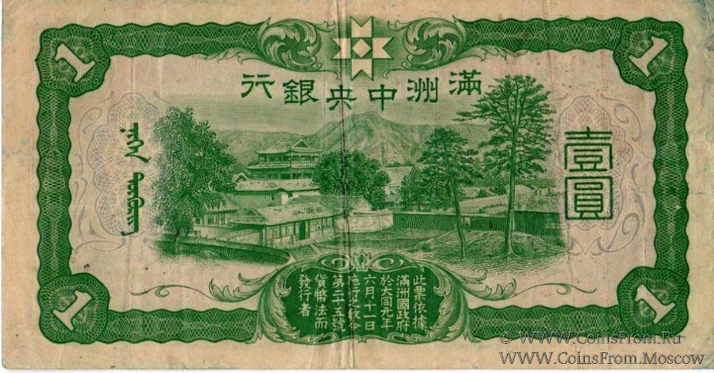 Выпуск 1937-1938 гг. Номер 7-значный. Центральный банк Маньчжоу-го (Central Bank of Manchukuo / 滿洲中央銀行).