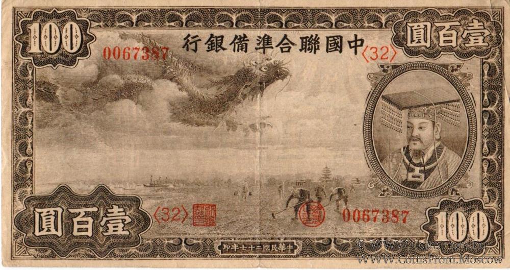 Второй выпуск 1938 г. (Тираж 1944 г. (?)). Федеральный резервный банк Китая (The Federal Reserve Bank of Chine / 中國聯合準備銀行).