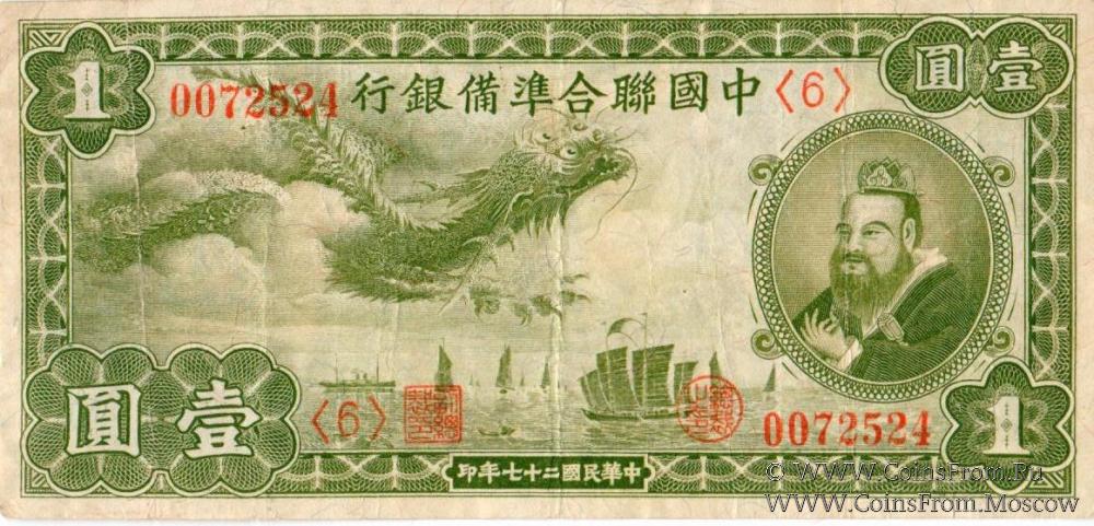 Выпуск 1938 г. (Тираж 1939 г. (?)). Федеральный резервный банк Китая (The Federal Reserve Bank of Chine / 中國聯合準備銀行).