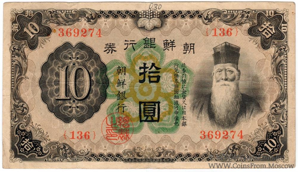 Выпуск 1932-1938 гг. Тёсэн-банк - Банк Кореи (朝鮮銀行).