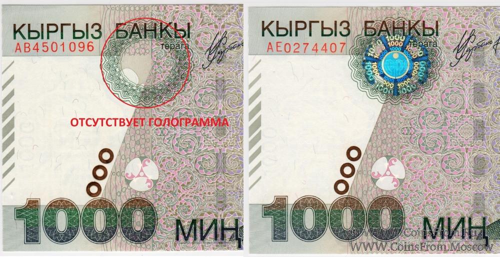БРАК: отсутствует голограмма на аверсе. Выпуск 1997-2005 гг. III серия. Национальный банк Киргизской Республики.