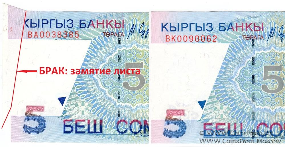 Выпуск 1997-2005 гг. III серия. БРАК обрезки: замятие листа ("бабочка"). Национальный банк Киргизской Республики.