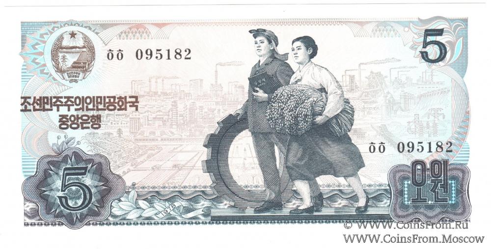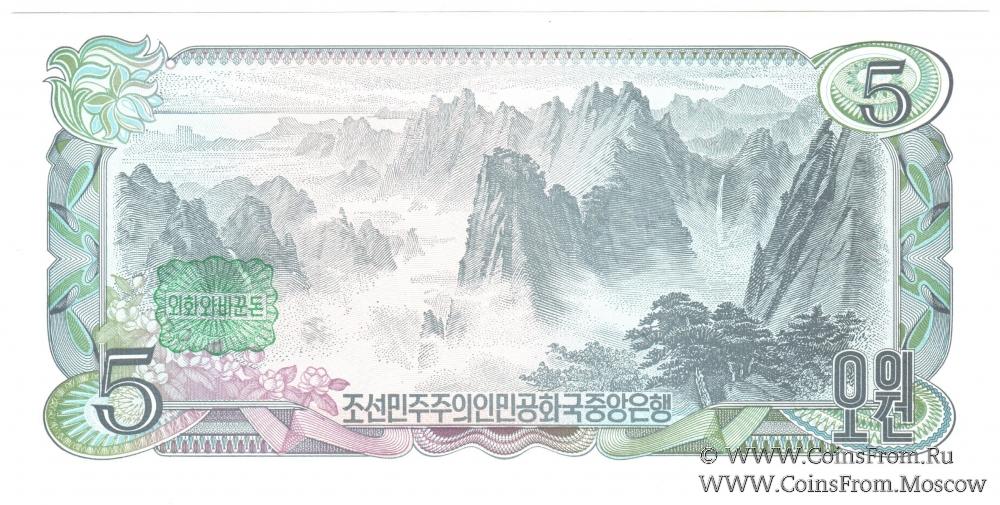 Выпуск 1978 г. Номер черный и черный, зеленая печать на реверсе. Центральный банк Корейской Народно-Демократической Республики (조선민주주의인민공화국중앙은행).