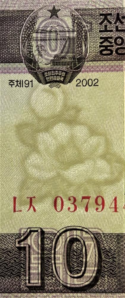 Выпуск 2002 г. Центральный банк Корейской Народно-Демократической Республики (조선민주주의인민공화국중앙은행).
