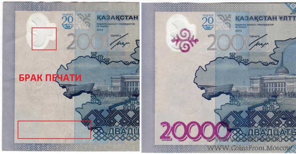 Номинал на реверсе "20 000" и виньетка нанесены оптически изменяюшей цвет краской (OVI).