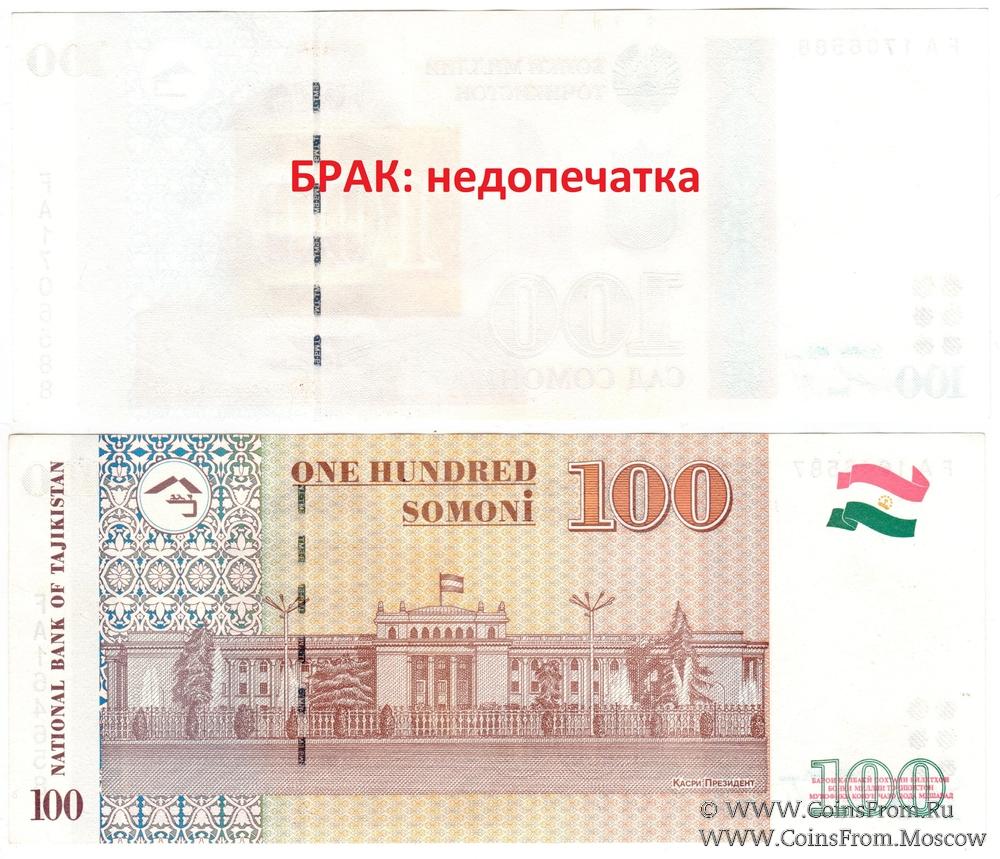 БРАК: недопечатка (только аверс, без реверса). Национальный банк Таджикистана (Бонки миллии Тоҷикистон).