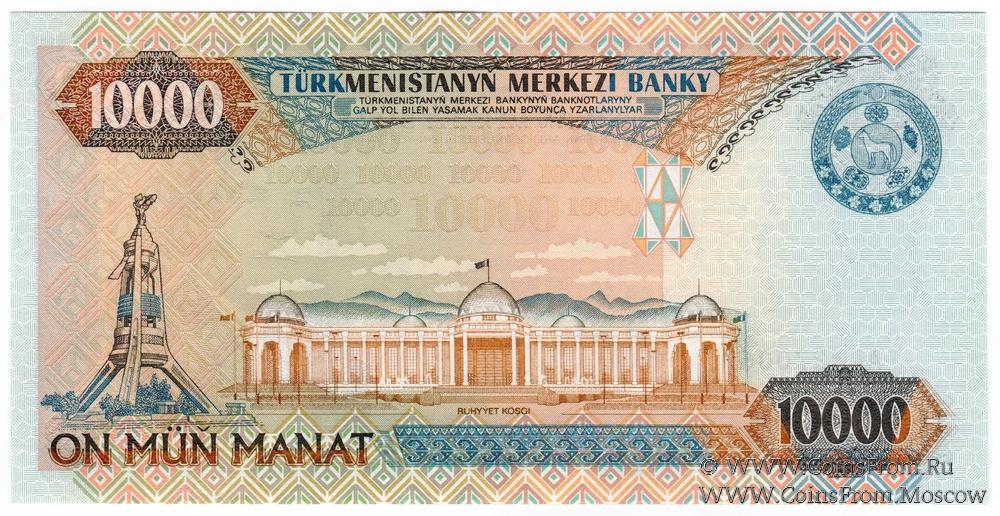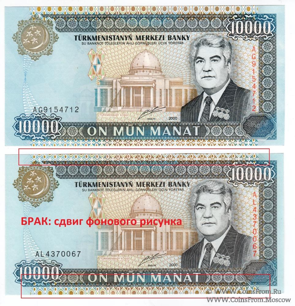 Выпуск Выпуск 1998-2003 гг. БРАК: сдвиг фонового рисунка. Золотистая розетка. Центральный Банк Туркменистана (Türkmenistanyň Merkezi Banky).