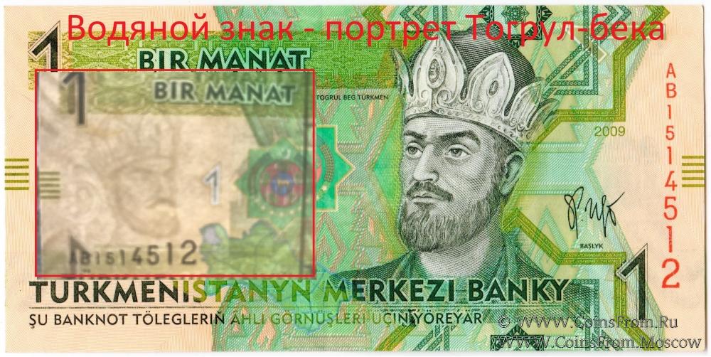 • 1 манат портрет Тогрул-бека (основатель и первый правитель династии Сельджукидов, туркмен);