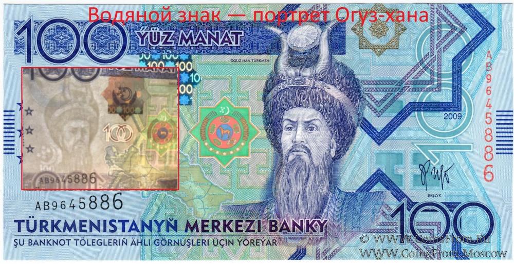 • 100 манатов — портрет Огуз-хана (легендарный герой-прародитель огузских племён).