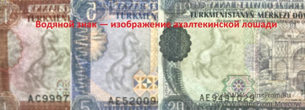 Водяные знаки на банкнотах Центрального Банка Туркменистана (Türkmenistanyň Merkezi banky). Туркменистан (Türkmenistan).