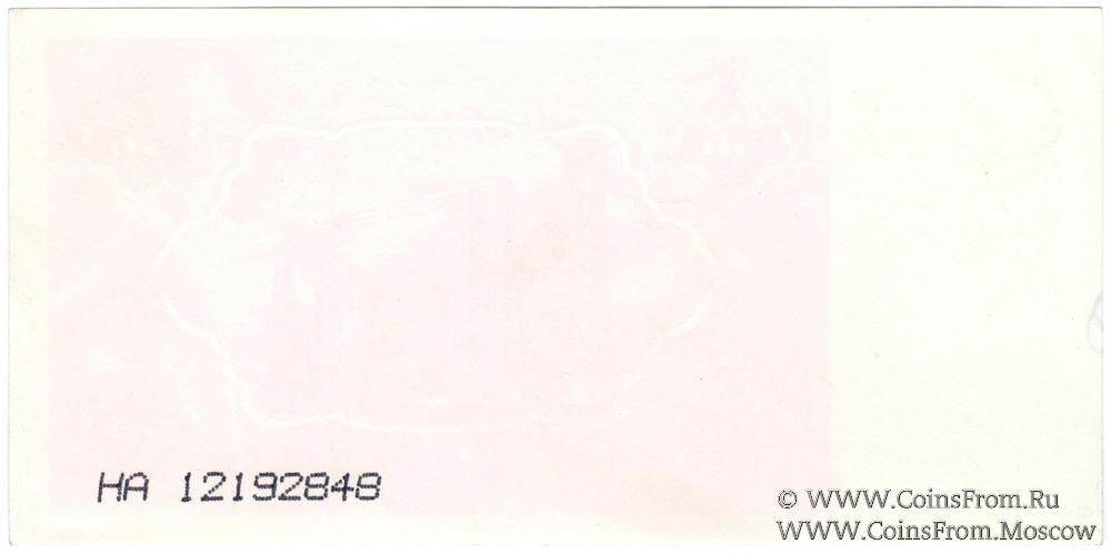 Выпуск 1992 г. БРАК (ПРОБА) печати: односторонний оттиск реверса. Государстенный банк Узбекистана (Ўзбекистон давлат банки).