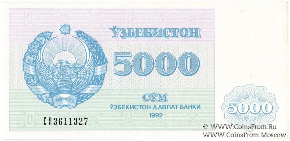 Выпуск 1992 г. Номер типографский 7-значный (3,6 мм). Серия - высота 4,1 мм. Государстенный банк Узбекистана (Ўзбекистон давлат банки).