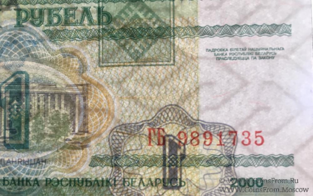 Выпуск 2000 г. Разменный билет (Разлiковы Бiлет Ницыянальнага Банка Беларусi).