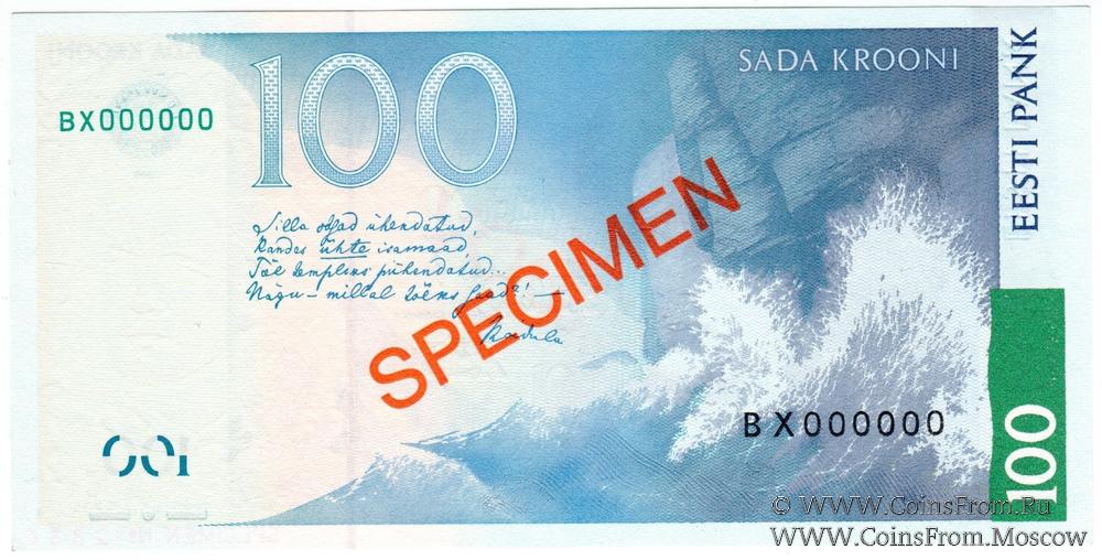 ОБРАЗЕЦ № 2836: надпечатка красного цвета по диагонали "PROOV" (на эстонском языке) на аверсе, "SPECIMEN" - на реверсе.