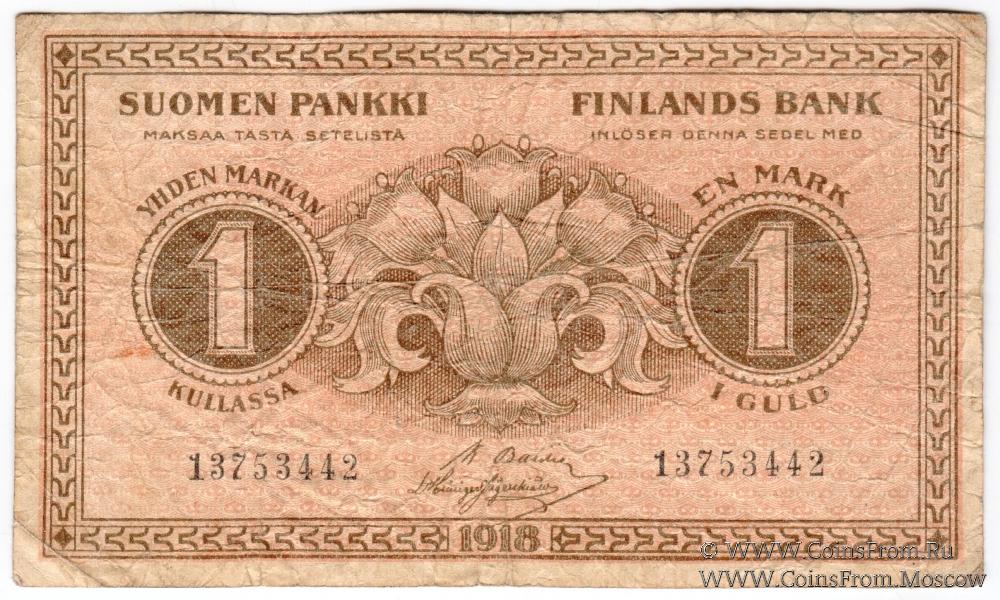 Выпуск 1918 г. Номер 8-значный. Банк Финляндии (Suomen Pankki, Finlands Bank).