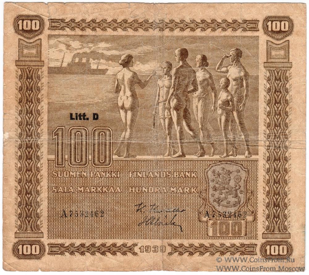 Выпуск 1963 г. Литера D (Litt. D). В номере литера А. Банк Финляндии (Suomen Pankki, Finlands Bank).