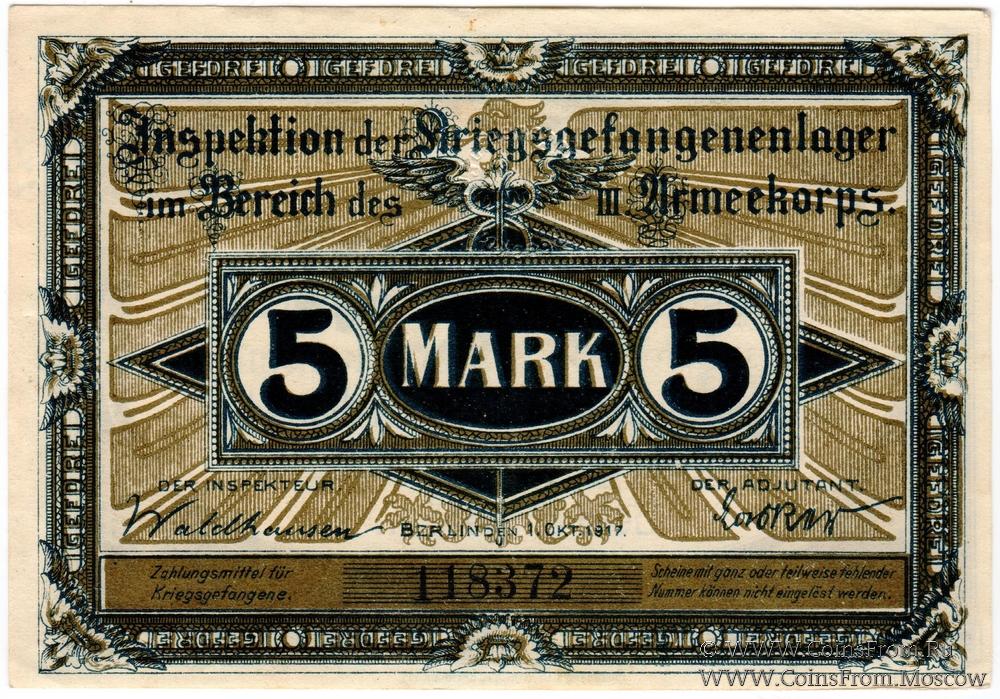 Денежные знаки лагерей военнопленных. Первая мировая война. (Des Papiergeldes der Gefangenenlager im 1. Weltkrieg KGL).