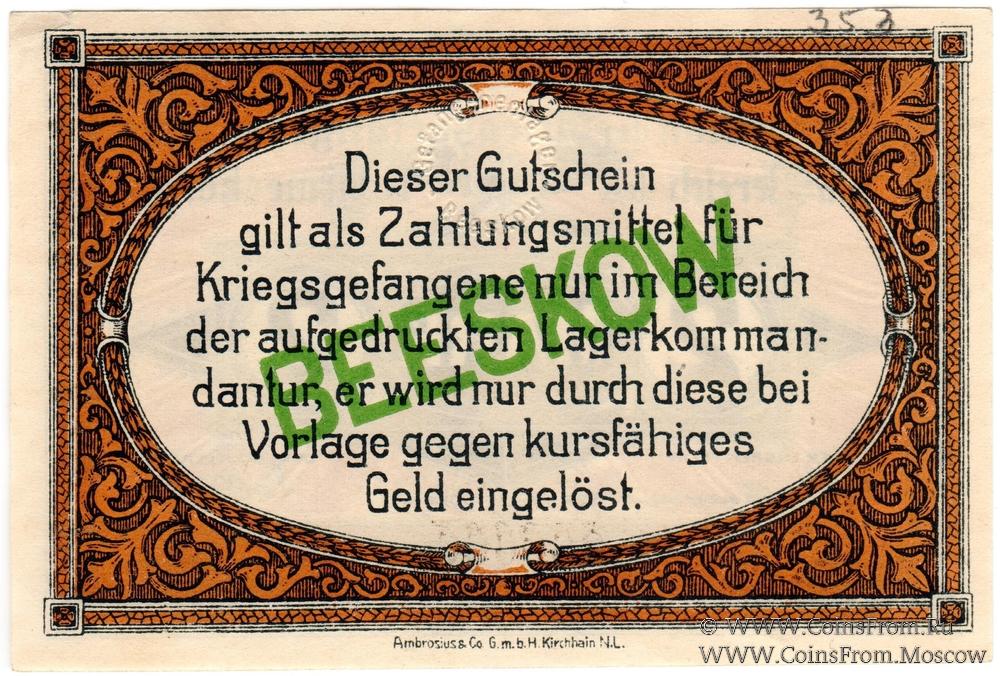 Денежные знаки лагерей военнопленных. Первая мировая война. (Des Papiergeldes der Gefangenenlager im 1. Weltkrieg KGL).