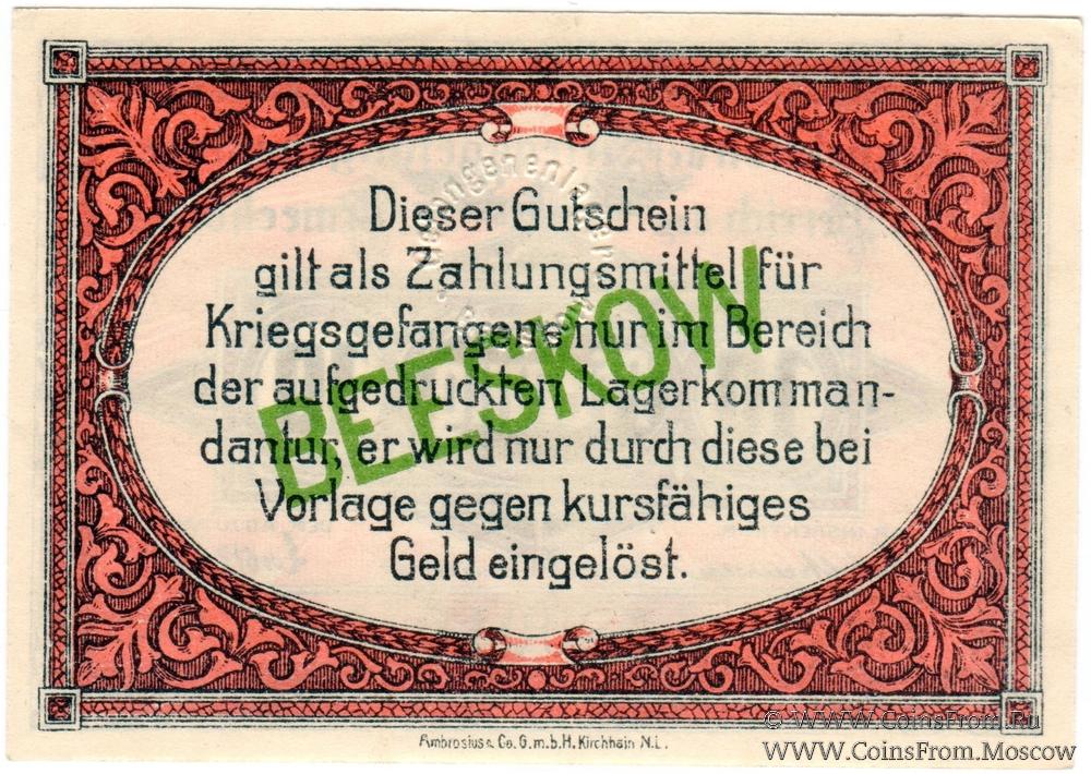 Купон. 1917 г. (Gutschein. 1917). Офицерский лагерь военнопленных Beeskow.