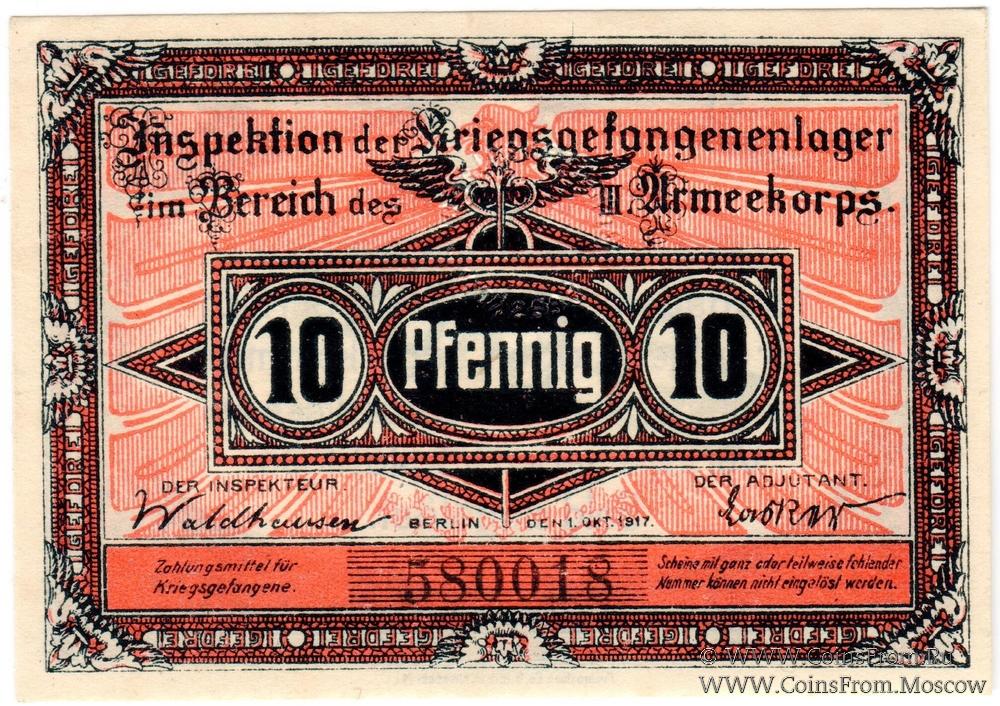 Денежные знаки лагерей военнопленных. Первая мировая война. (Des Papiergeldes der Gefangenenlager im 1. Weltkrieg KGL).