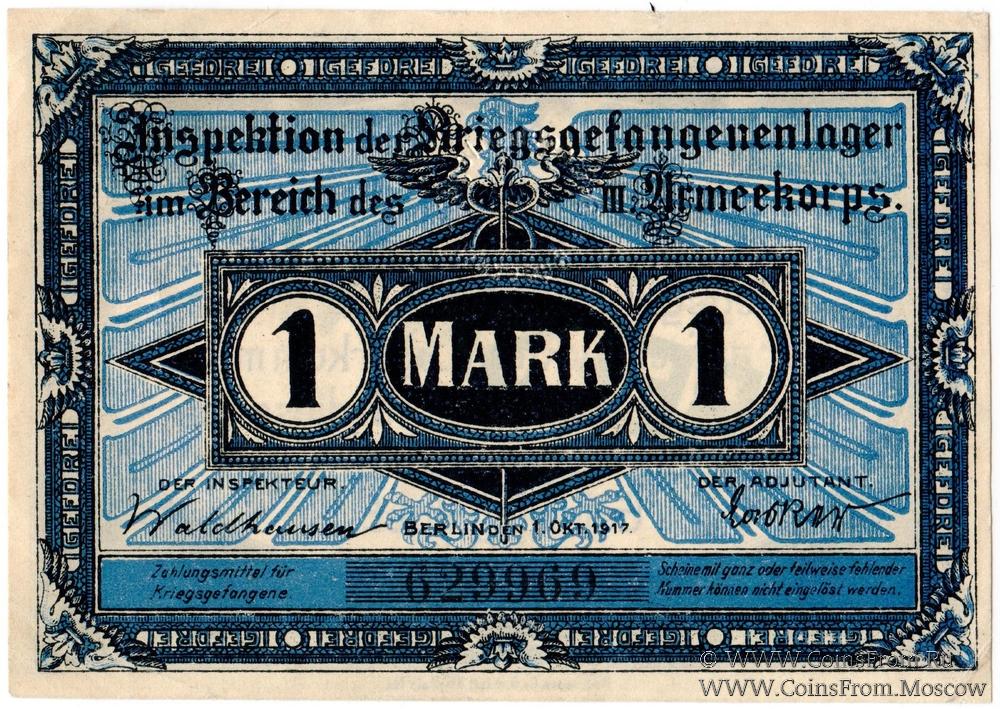Купон. 1917 г. (Gutschein. 1917). Офицерский лагерь военнопленных Beeskow.