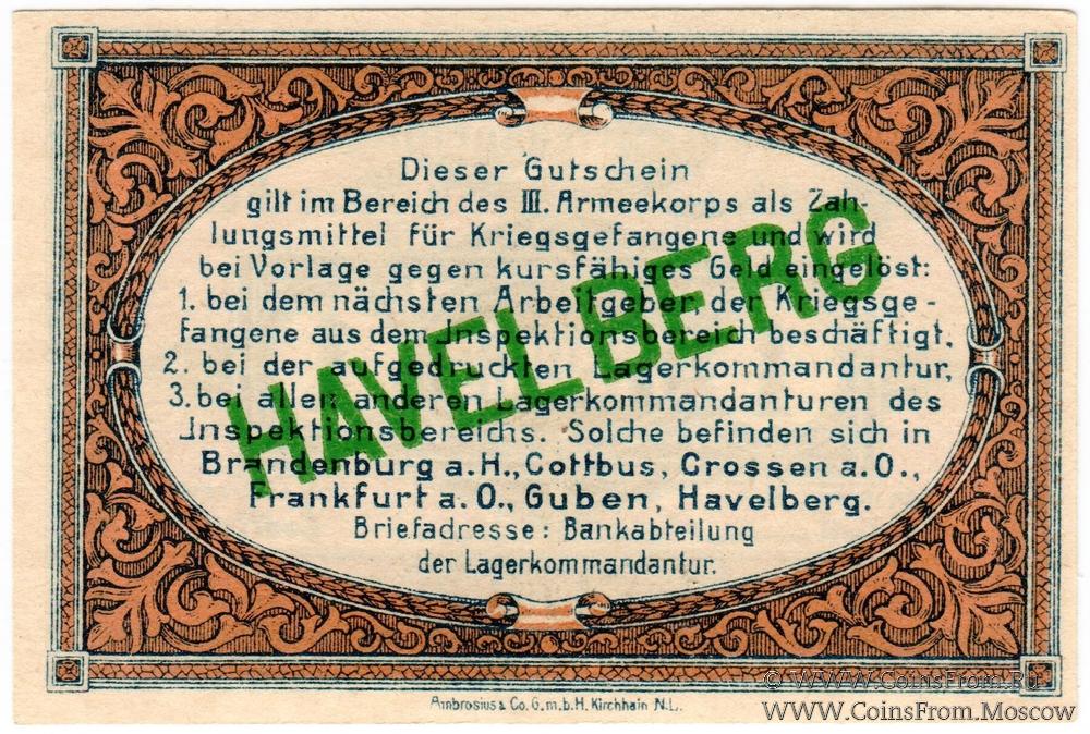 Денежные знаки лагерей военнопленных. Первая мировая война. (Des Papiergeldes der Gefangenenlager im 1. Weltkrieg KGL).