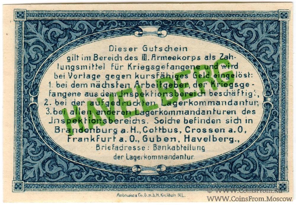 Купон. 1 октября 1917 года. (Gutschein. 1 Oktober 1917). Солдатский лагерь военнопленных Havelberg.