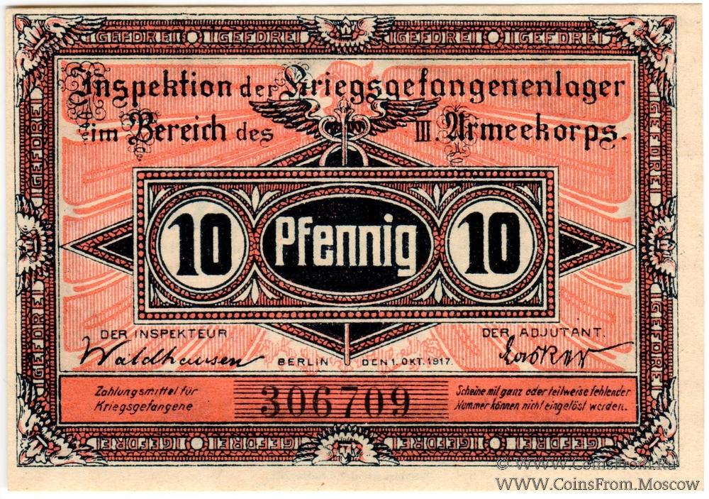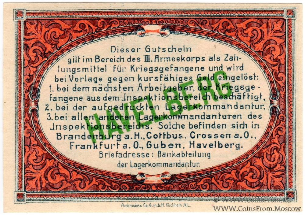 Денежные знаки лагерей военнопленных. Первая мировая война. (Des Papiergeldes der Gefangenenlager im 1. Weltkrieg KGL).