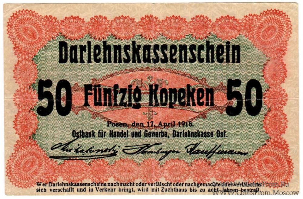 (Ostbank für Handel und Gewerbe, Darlehnskasse OST / Darlehnskassenschein. Posen, den 17. April 1916).