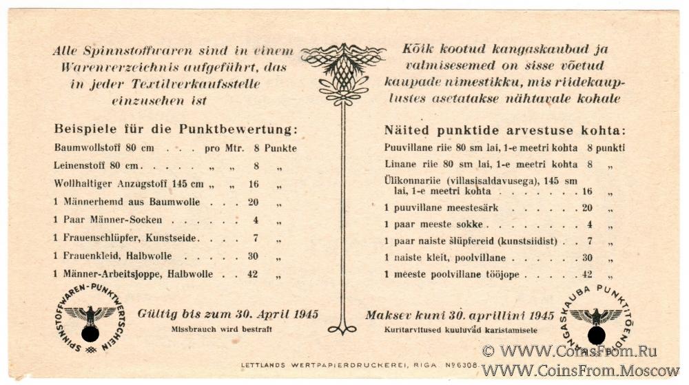 Без номера. LWR (Lettlands Wertpapierdruckerei, Riga). Текстильные талоны. Reichskommissariat OSTLAND.