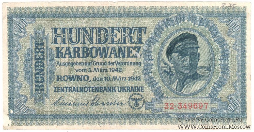 Карбованец рейхскомиссариата Украина. Обращались на оккупированной территории западной и центральной Украины параллельно с немецкими марками (10 карбованцев = 1 рейхсмарка).