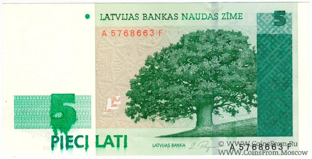 Выпуск 1993-1998 гг. (в латах). БРАК печати: расплылась краска на аверсе.