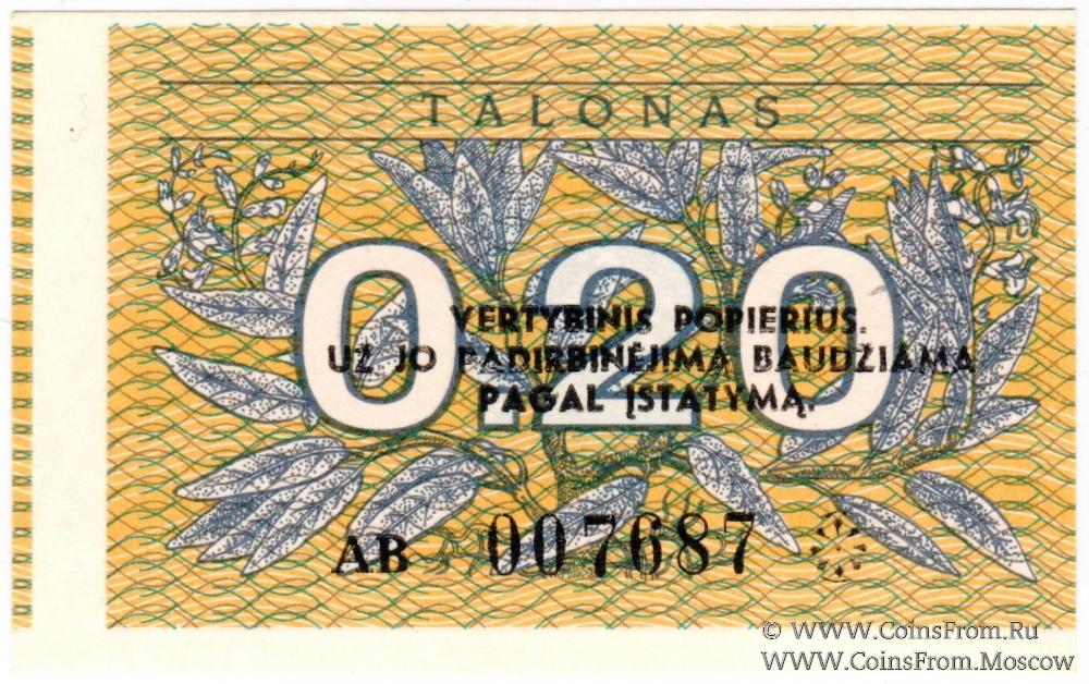 Талоны достоинством в 0.10, 0.20, 0.50 в качестве денежных знаков не использовались.