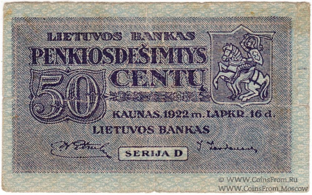 Выпуски 1918 - 1940 гг. Серия D. Банк Литвы (Lietuvos Bankas).