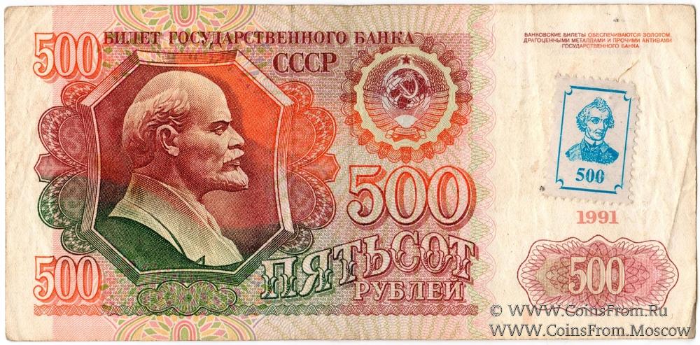 Банкнота СССР 1991 г. с маркой подтверждения (1994 г.).