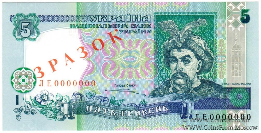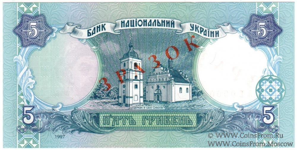 5 гривен 1997 г. ОБРАЗЕЦ (ЗРАЗОК)
