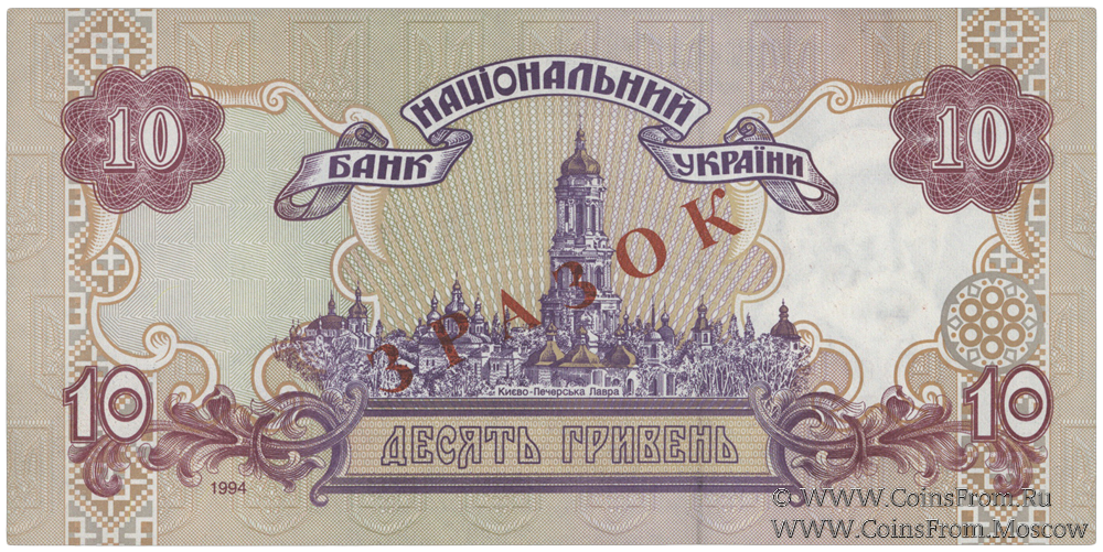 10 гривен 1994 г. ОБРАЗЕЦ (ЗРАЗОК)